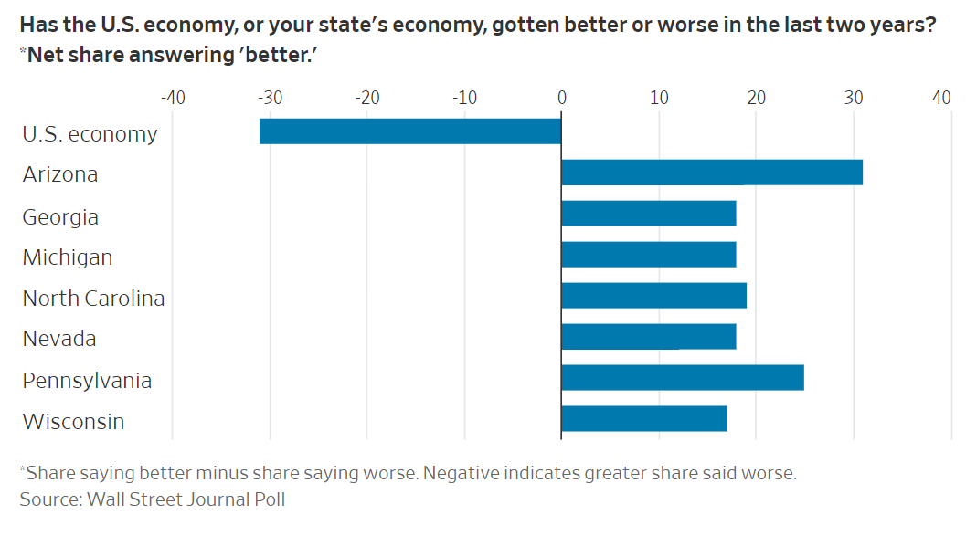 This is good news for the Biden campaign. In each of these critical battlegrounds, most people are saying things are getting better in their state, even if they falsely believe they are getting worse for the rest of the country. Between now and November, Democratic messaging will help bring these two concepts into alignment.