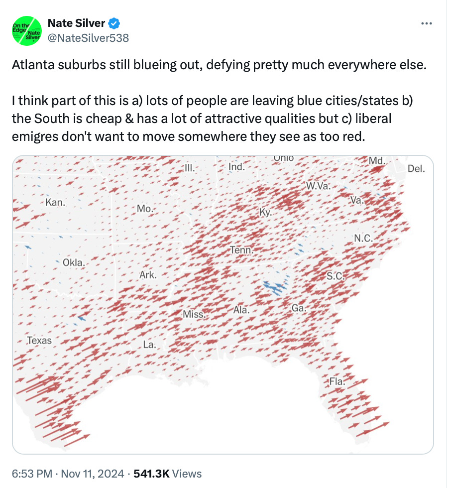 As Nate Silver notes, the strength in Georgia was largely due to growth outside of Atlanta, which this year defied the pro-Trump national trend.