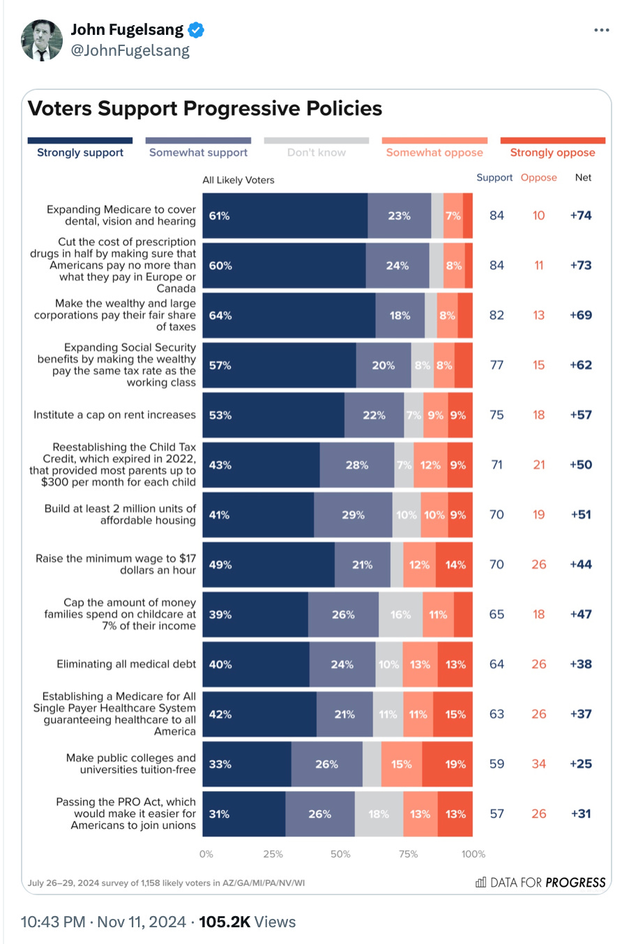 Take these Data For Progress poll results from this past summer, which polled swing state voters on a variety of progressive issues.