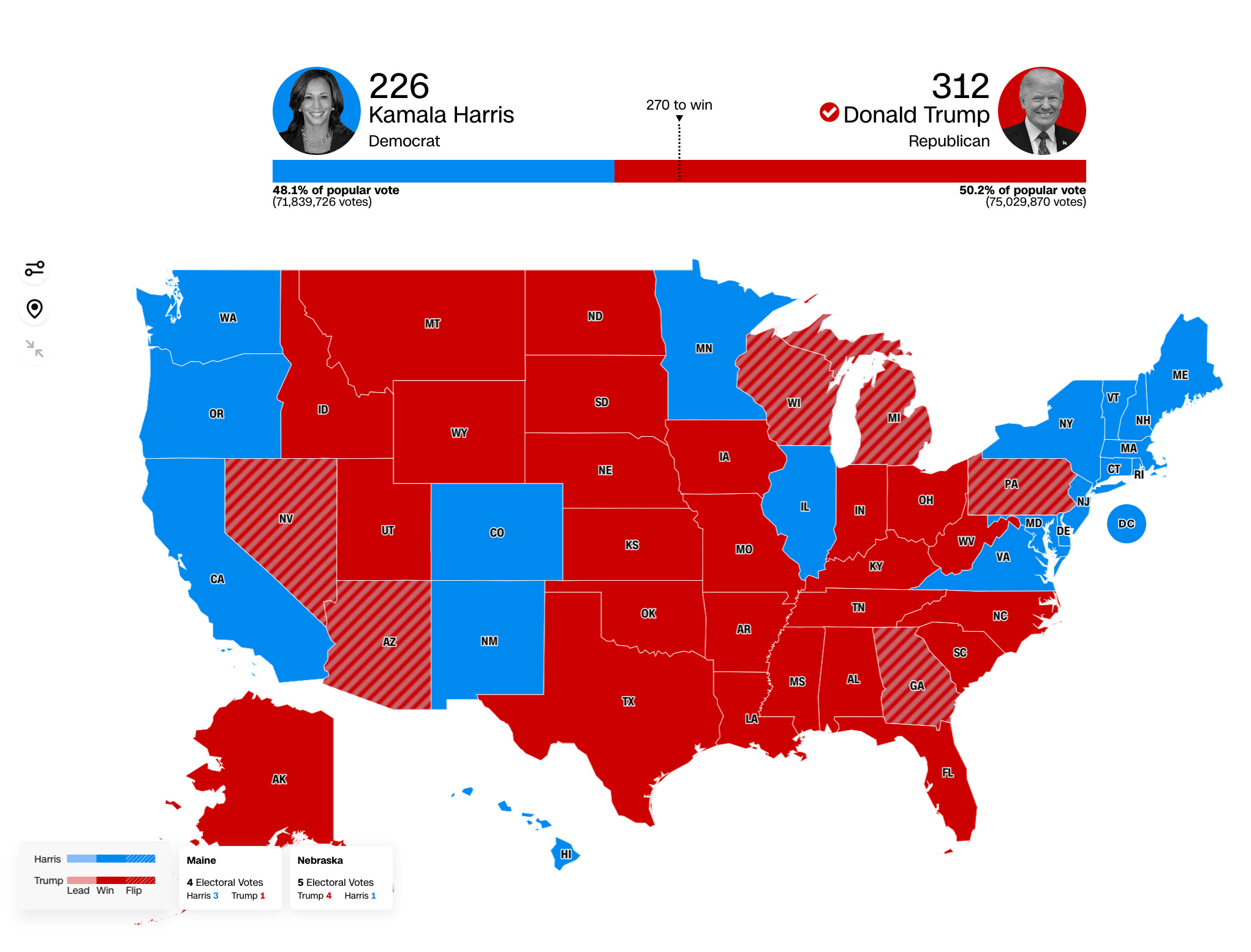 Donald Trump’s final Electoral College victory is 312-226.