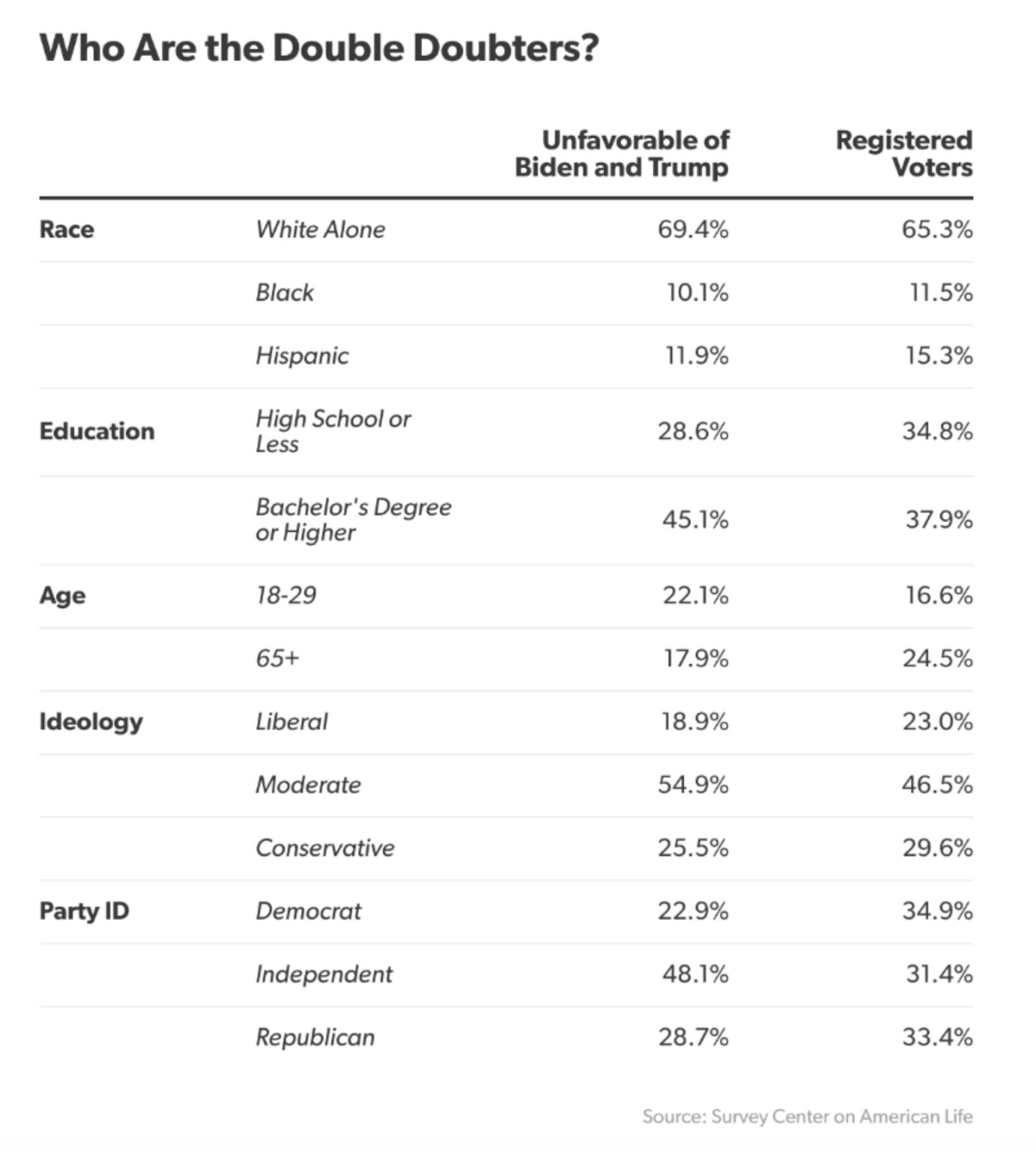 What they found is that Double Doubters are quite distinct from the electorate at large: