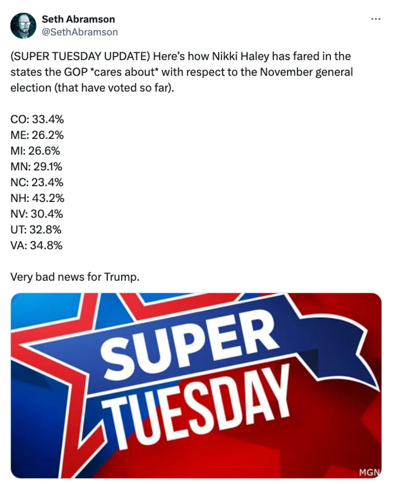 But Joe Biden, historically, has been winning those types of people. Now, right now, those people are really down on Biden because he's the president. He's front of mind for them. But as Donald Trump becomes the nominee and people remember why they disliked Donald Trump so much and why they - why he's so extreme, why he's so chaotic and crazy, I do think potentially many of those people either stay home or break for Biden, and those tend to be these college-educated - it's not just suburban women that is too reductive. It is college-educated suburban voters. Overall, Nikki Haley is winning by massive margins there, and I think those people are not going to vote for Trump.