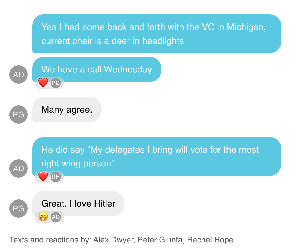 “reveal a culture where racist, antisemitic and violent rhetoric circulate freely — and where the Trump-era loosening of political norms has made such talk feel less taboo among those positioning themselves as the party’s next leaders.”