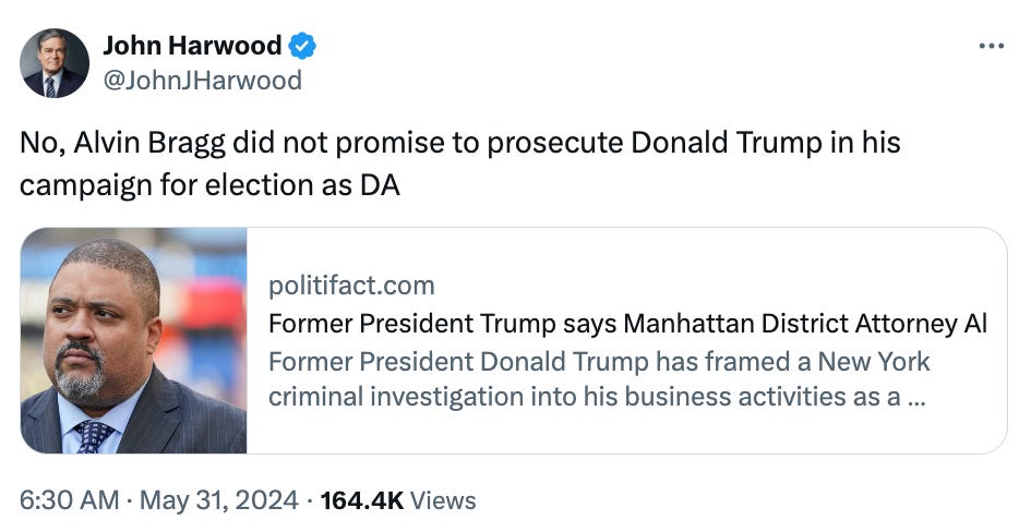 Take Alvin Bragg’s New York State prosecution against Trump, which recently resulted in guilty verdicts in 34 criminal counts.