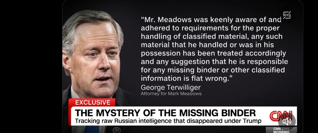 What this statement doesn’t deny, however, is that Meadows took the original Binder, perhaps on orders from the former president or under the broad belief that he was doing nothing wrong because it had all verbally been “declassified.”